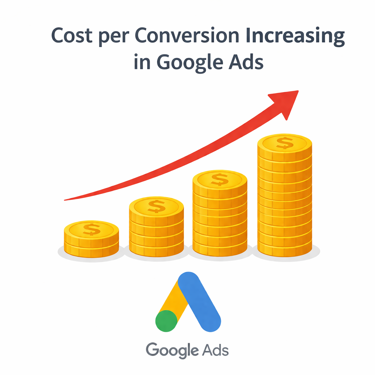 One key observation was that our cost per conversion had been rising sharply, indicating diminishing return on ad spend (ROAS) and signaling a need to restructure our paid media strategy.