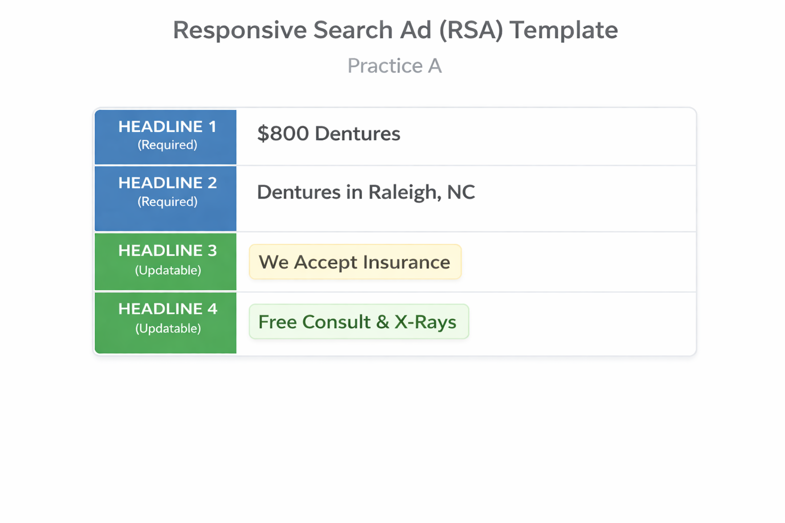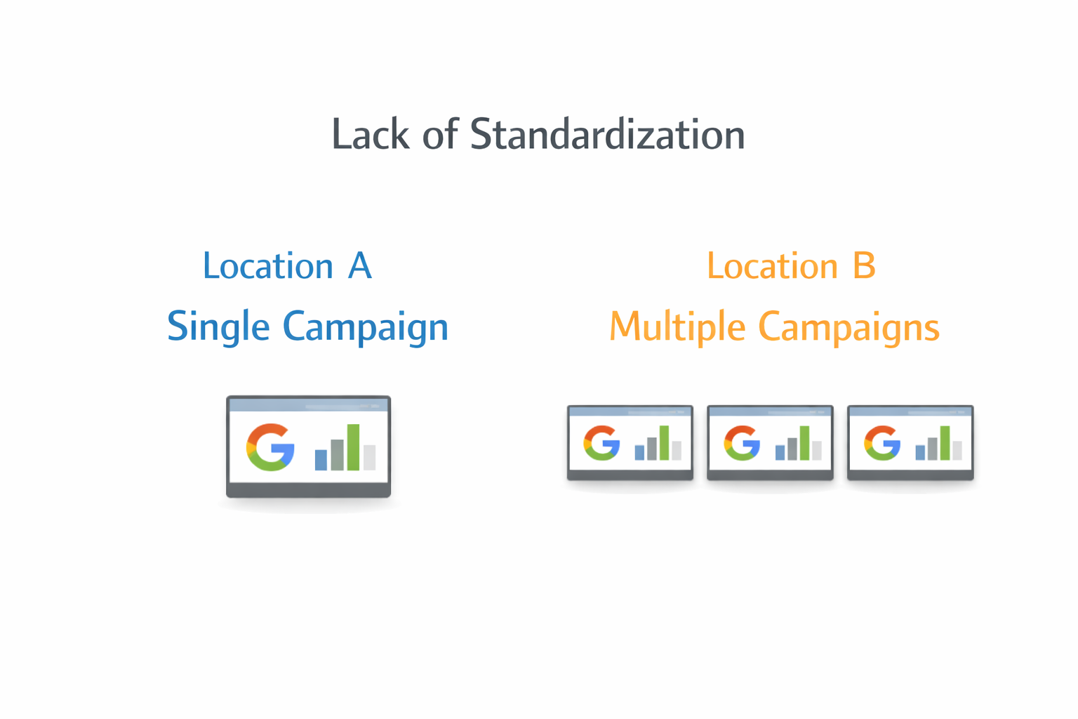· This lack of standardization led to a risk of mistakes and made it very difficult to troubleshoot issues with lead generation for our different dental locations due to the many different changing variables from campaign to campiagn.